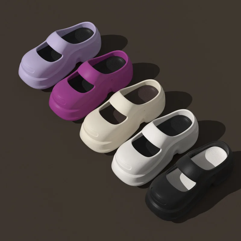 Upper fixing method: Injection molding Gender: Women Closure Type: Pull On High-concerned chemical: None Style: LEISURE Shoes Type: Basic Heel Type: Flat with Heel Height: Med (3CM – 5CM) Platform Height: 0-3cm With Platforms: Yes Fashion Element: Platform Fit: Smaller Than Usual Lining Material: None Applicable Place: Indoor Season: Summer Model Number: 0T217 Outsole Material: EVA Pattern Type: Solid Insole Material: EVA Upper Material: EVA Brand Name: NBYYCHD Department Name: Adult Origin: Mainland China CN: Zhejiang Item Type: slippers